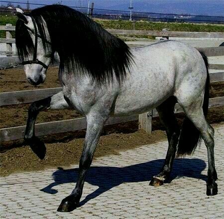 “The Carthusian originated in Spain. It is also known as the Carthusian-Andalusian or Carthujano. It is used for riding and is 15.2 h.h. The Carthusian is not a separate breed from the Andalusian, but rather a distinct side branch that is usually considered the purest remaining strain. This is one of Spain's most prestigious lines of the Spanish horse and has one of the oldest stud books in the world. The Zamora brothers, who had mares of this breeding, purchased an old horse named El Soldado. They bred him to two mares. The resultant offspring were a colt and a filly; the former was Esclavo, the foundation sire of the Carthusian strain. Esclavo was dark gray, considered to be a perfect horse. He produced many outstanding offspring, which were purchases by the breeders of Jerez.”