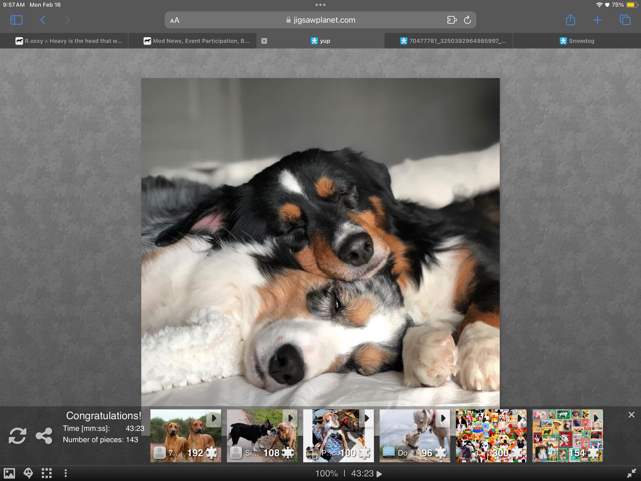 Puzzle 1 - https://flic.kr/p/2rXgHgf Puzzle 2 - https://flic.kr/p/2rXmeeC Puzzle 3 - https://flic.kr/p/2rXmeeH Puzzle 4 - https://flic.kr/p/2rXo9br Points to Solano (: https://horsephenomena.com/dogs.php?id=202857